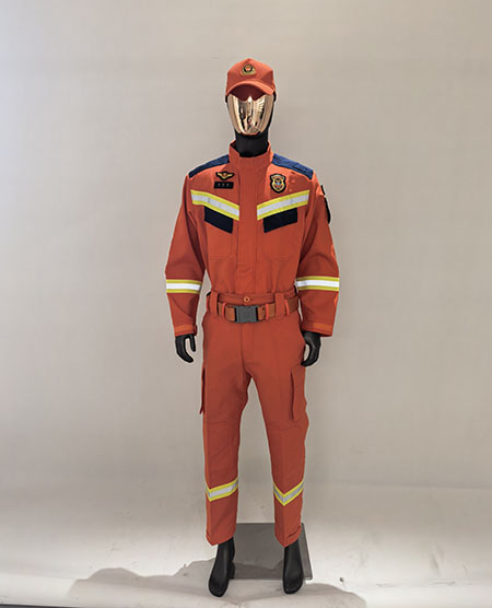 參照《17式消防員搶險救援防護服款式標識統(tǒng)型要求,符合GA 633-2006《消防員搶險救援防護服裝》相關標準。提供產品檢驗報告。